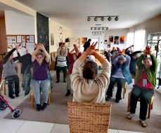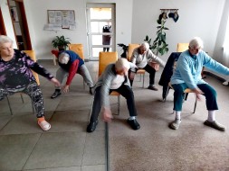 Jako každé pondělí tu máme lehké protahování svalů na židlích. Další týden plný akcí a aktivit může začít.