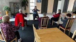 Po čase nás navštívily milé děti z místní mateřinky. Cvičilo se, zpívalo se, zkrátka setkání se opět povedlo na výbornou! Všichni spokojení.
