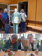 S paní Jankou jsme dopoledne připravili dvě rolády: kakaovou a vanilkovou. Odpoledne u kávy roláda všem chutnala