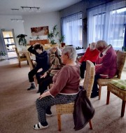Po čase nás navštívily milé děti z místní mateřinky. Cvičilo se, zpívalo se, zkrátka setkání se opět povedlo na výbornou! Všichni spokojení.