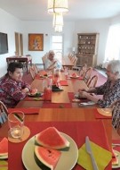Deštivé odpoledne nám zabránilo setkání v atriu. Nevadí, melounové párty se odehrálo uvnitř, v hale.