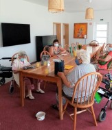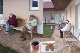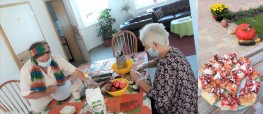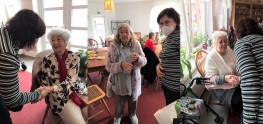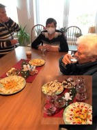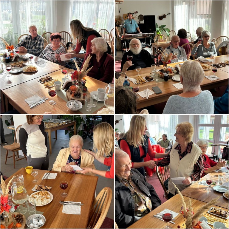 První jubilantka se dočkala oslavy v novém bytě od otevření areálu v Hlušovicích. Společně jsme připravily pohoštění a bezva posezení může začít.