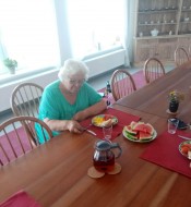 Snídani v hale nám připravila hospodyňka Veronika. Po vydatné snídani jsme si pochutnali na melounu ![]()