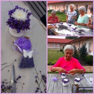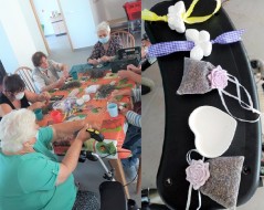 Měly jsme dnes možnost mezi námi přivítat paní Milušku. Společně jsme sedly ke stolu v hale a naučily jsme se vyrobit voňavé levandulové dárky