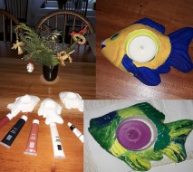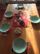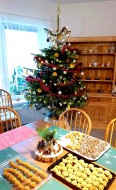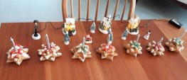Dostali jsme nápad upravit již vysloužilé ubrusy, které jsme nastříhali na menší rozměry a Maruška zasedla ke svému šicímu stroji. Její zručnost a celoživotní vášeň proměnila kousky látky na hezkou vánoční dekoraci.