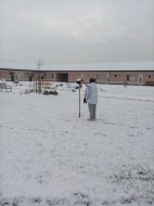 Na prvním cvičení v novém bydlišti se sešly dvě děvčata. Zatím nás tady bydlí jen několik, ale postupně se areál obsazuje.