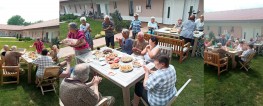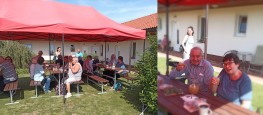 V rámci sousedského dne jsme mezi nás pozvali sousedy bydlící v Rychvaldu u Ostravy a Medlově u Brna. Domácí závin připravila paní Maruška a hanácké vdolky paní Liduška. Zvěřinové pochoutky jako řízky a ragů z divočáka si rovněž všichni pochvalovali. Bylo to příjemné odpoledne s hudbou, jsme rádi, že se všem u nás v Hlušovicích líbilo.
