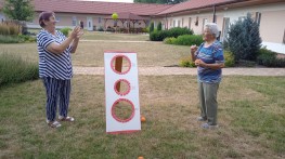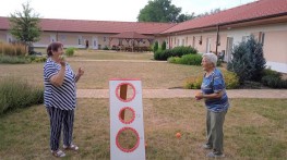 Soutěžit se dá v čemkoliv. Například v hodu míčkem na terč. No a kdyby se vám zrovna moc nedařilo, nevadí. Můžete zkusit házet tácky na čáru ![]()