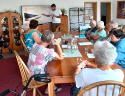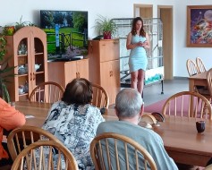 Mgr. Hana Filipová z Centra pro rodinu a sociální péče nás pozvala na besedu, jak je pohyb velmi důležitou prevencí proti různým zdravotním neduhům. Předvedla nám současně také některé praktické cviky, které jsou pro člověka v seniorském věku vhodné, Přednáška se nám moc líbila a děkujeme za ní.