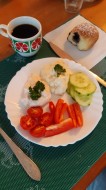 Dnešní ráno bylo pro nás překvapením v podobě chutné snídaně. Pan vedoucí spolu s hospodyní nachystali menu v podobě dokonce třech chodů. Všem nám chutnalo a těšíme se brzy na podobná setkávání.