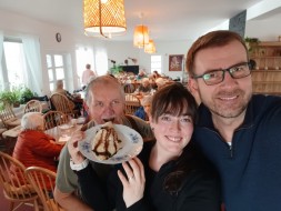 S domovníkem Pavlem jsme si zajeli do vyhlášené cukrárny v Dolanech. Skvělé zákusky jsme si koupili i domů a vzali jsme i sousedům, kteří se nemohli výletu zúčastnit.