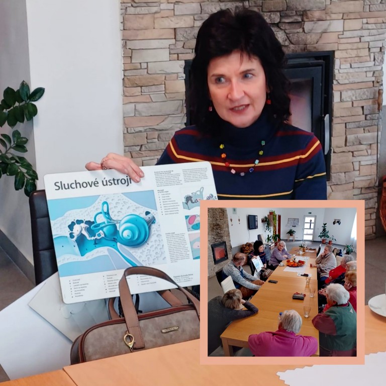 MUDr. Stachová, specialistka ORL nám dnes předala informace, které se týkají sluchu, který se s přibývajícím věkem zhoršuje. Dozvěděli jsme se, proč tomu tak je, jak se o sluch co nejlépe starat a mnoho dalšího. Paní doktorce děkujeme za přednášku.