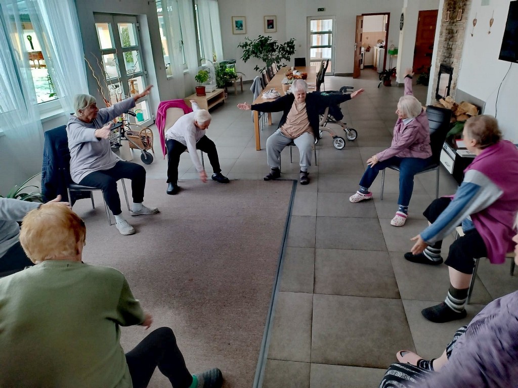 Je po víkendu a my se vracíme k aktivitám, které nám zpestřují všední dny. Cvičení se koná pravidelně každé pondělí a my víme, že se každý pohyb počítá. Přejeme hezký pracovní týden.