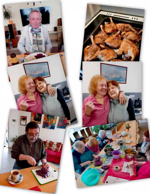 Rádi vaříme a ještě radši ochutnáváme! Náš pan správce pracoval dlouhá léta jako kuchař, a tak jsme si pod jeho vedením společně uvařili skvělý oběd. Kachní stehna s domácím zelím a dva druhy knedlíků k tomu! Bylo to nejen výborné, ale také obohacující.