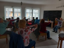 Dnešní cvičení na židlích si pro nás připravila sousedka Alenka. Každý pohyb se počítá, a protože to víme, scházíme se v hojném počtu.