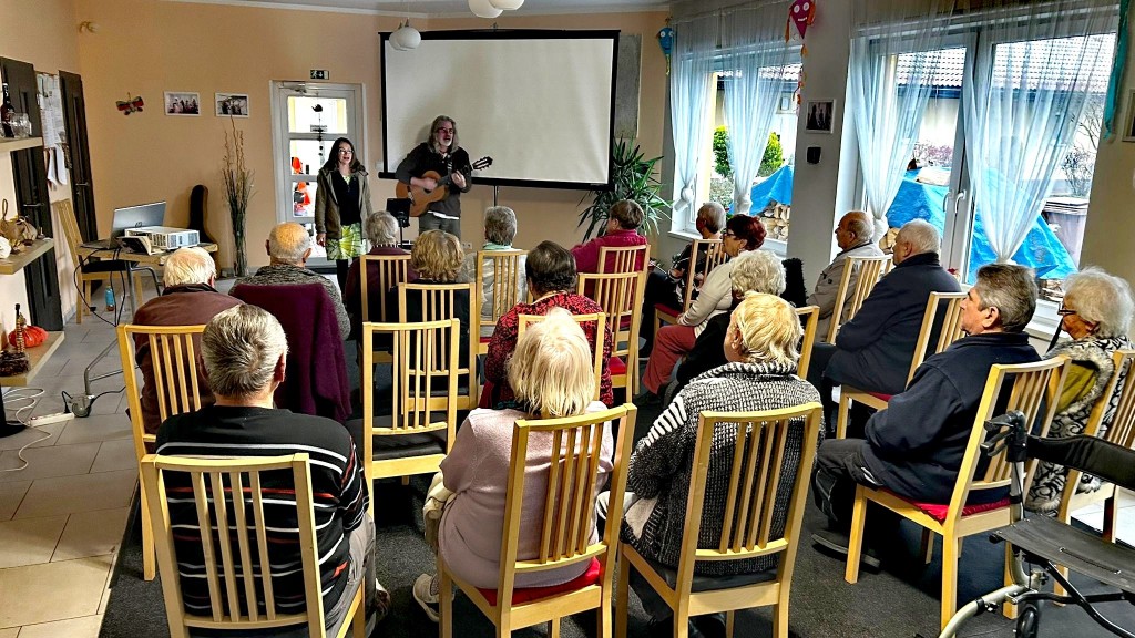 Martina a Martin u nás nevystupovali poprvé. V Senior Parku bydlí rodiče tohoto manželského páru a dnes nás dokonce mile překvapili společným zpěvem se svou maminkou. Písně byly doplněné projekcí fotografií a celé setkání bylo příjemným zpestřením dnešního odpoledne. Děkujeme.