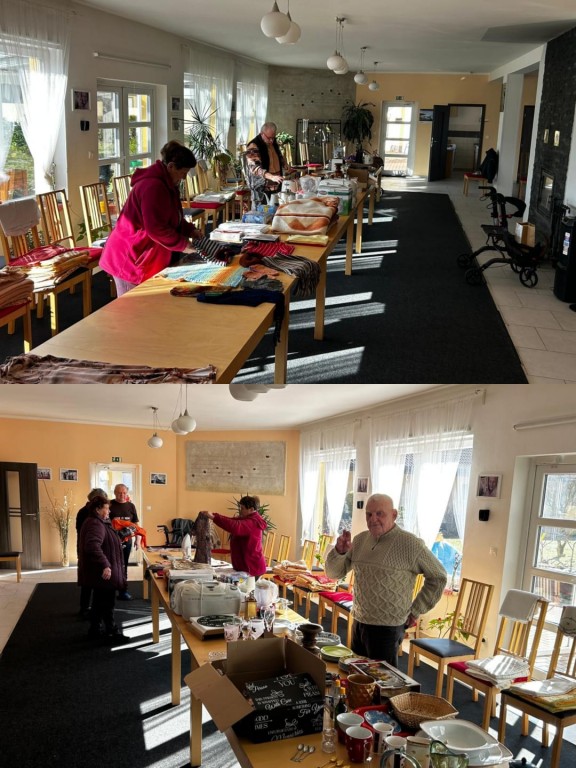 Ve společenské místnosti jsme spolu s personálem rozmístili plno předmětů i oblečení. Nám doma chybět nebudou a někomu určitě ještě poslouží. Přebytečné věci jsme odvezli do charitativního obchůdku ADRA.