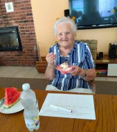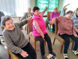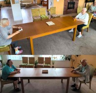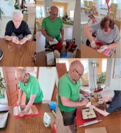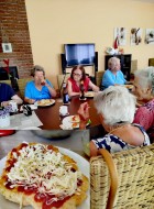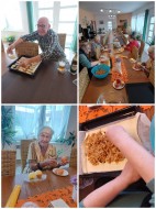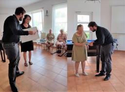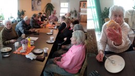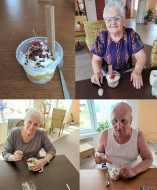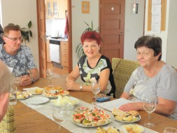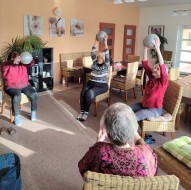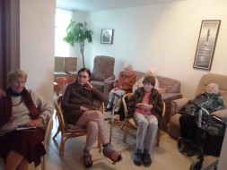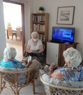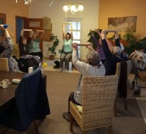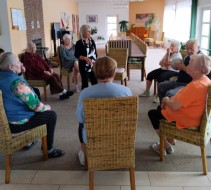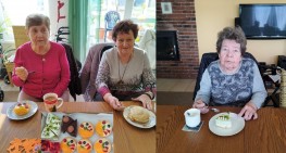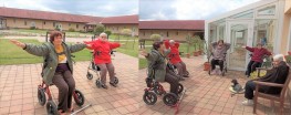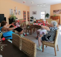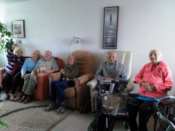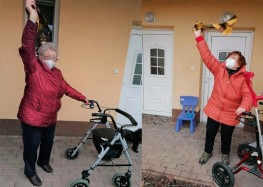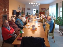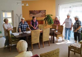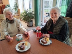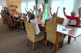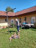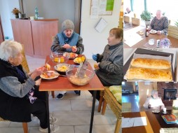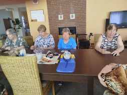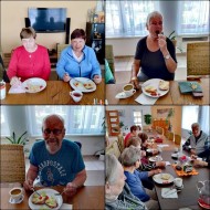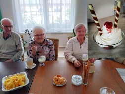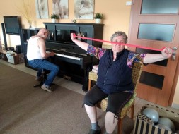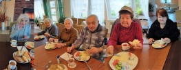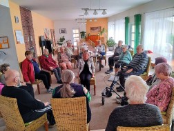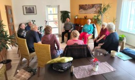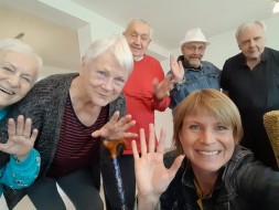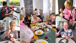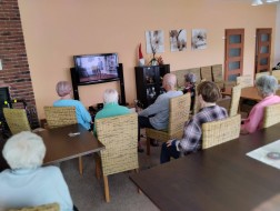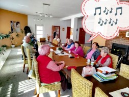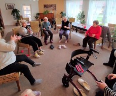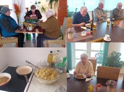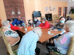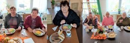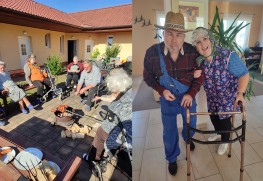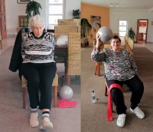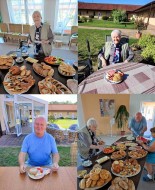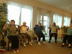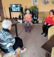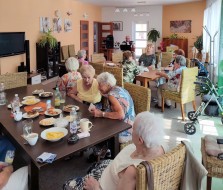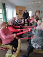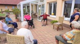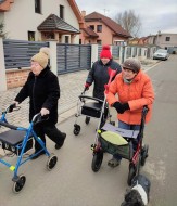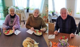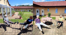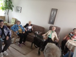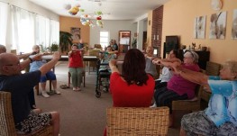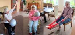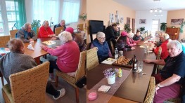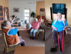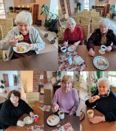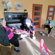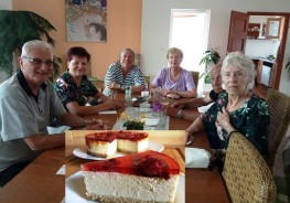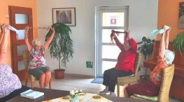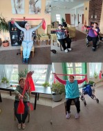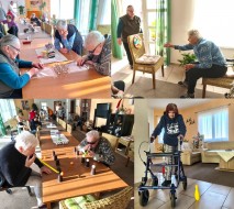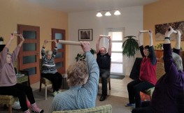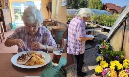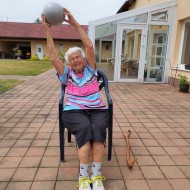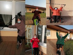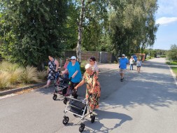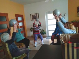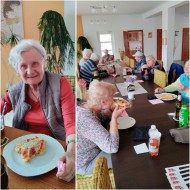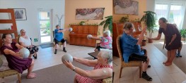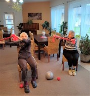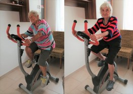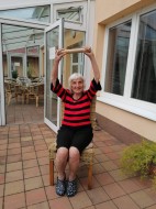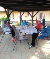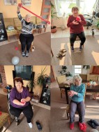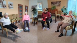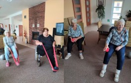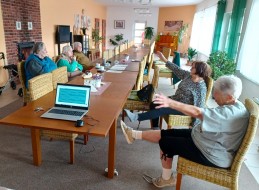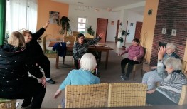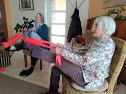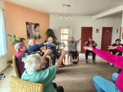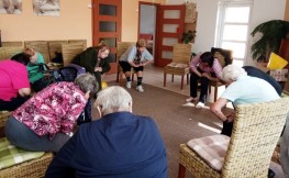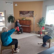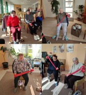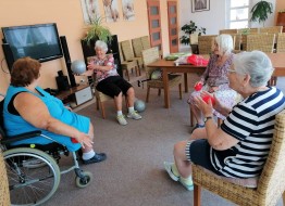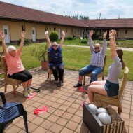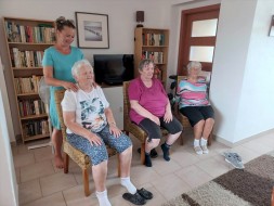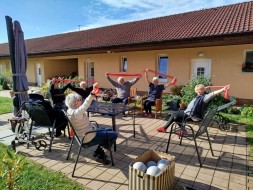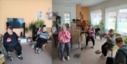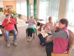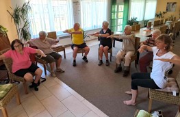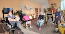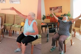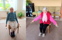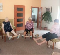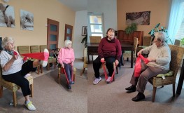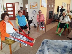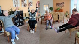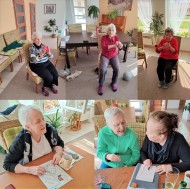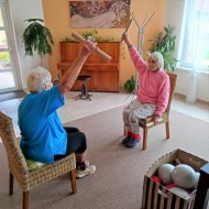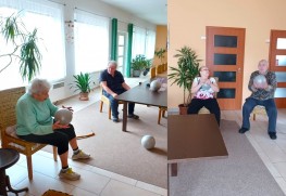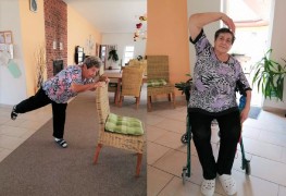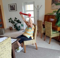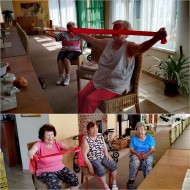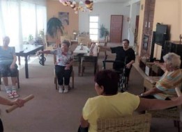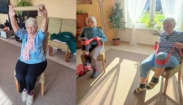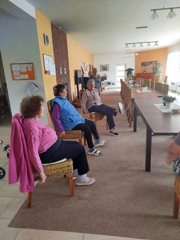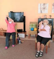 Velmi dobře si uvědomujeme, že pohyb je prospěšný v každém věku. Rádi si jednou týdně zajdeme na vedené cvičení na židlích, každý pohyb se počítá. A odpoledne ještě malá procházka venku se sousedkou.
