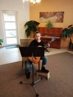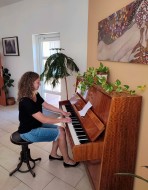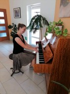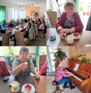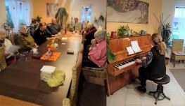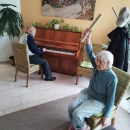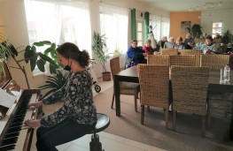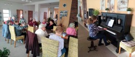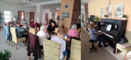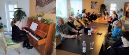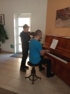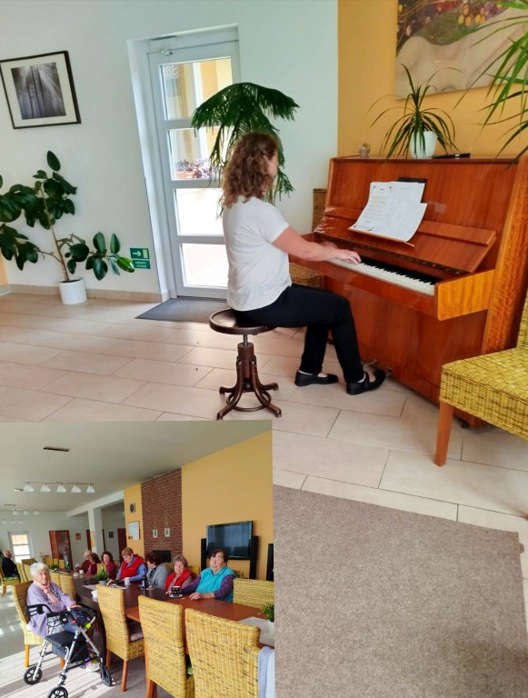 Paní Ludvíková nám přišla po nějakém čase zpříjemnit odpoledne u hudby na klavír, který máme k užívání v hale.