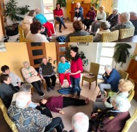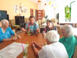 Po měsíci se scházíme s vedoucí Martou nejen u kávy a čaje, ale probíráme vše potřebné a užitečné, co se táká srpnových aktivit a novinek u nás v Senior Parku. Scházíme se v hojném počtu a do diskuze se aktivně zapojujeme.