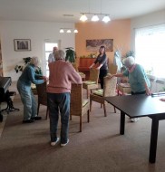 Při pondělku pravidelná dávka pohybové aktivitky na židlích. Dnes po vzoru Permanenta. Krásně jsme se protáhli.