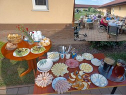 Měsíc se s měsícem sešel a opět jsme se potkali u snídaně se sousedy. Bohatý talíř plný dobrot a čerstvá káva, která provoní naší halu, vždy přiláká spoustu sousedů.