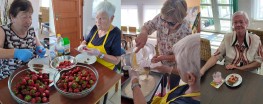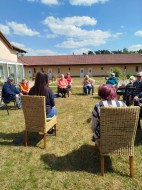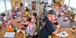 Naše vedoucí paní Marta Šťastná nás po měsíci pozvala ke společnému setkání v hale. Probrali jsme vše potřebné, například připravený program akcí a aktivit na měsíc září. U malého pohoštění se diskutovalo lépe a děkujeme i za něj.