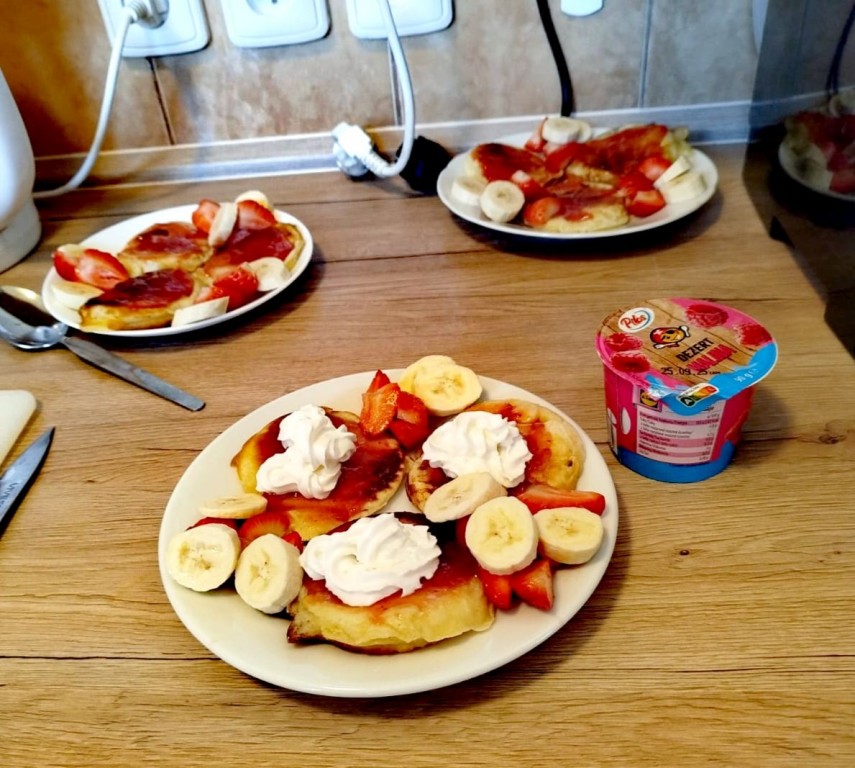 Lívance s marmelásou, ovocem a šlehačkou jsme si dopřáli u společné snídaně se sousedy. Sladká snídaně krásně odstartovala páteční den.