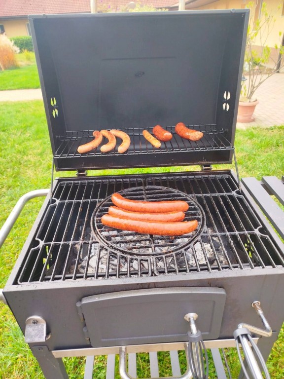 Počasí příjemné na oheň nebo grilování. Musíme toho tedy využít, proto jsme si dnes k obědu dali buřty z grilu a všichni jsme si pochutnali.