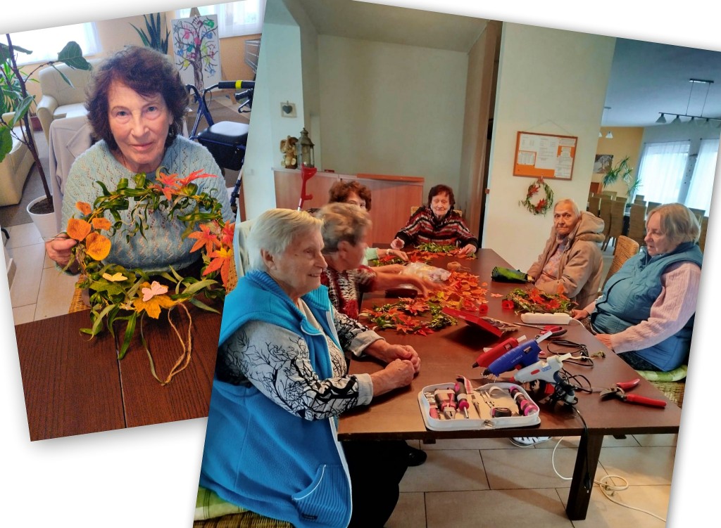 Naše milá hospodyňka Zdenička si vždycky vymyslí krásnou záležitost na tvořivou dílnu. Dnešní podzimní věnce na stůl nebo vchodové dveře našich bytů se povedly a tvoření nás ohromně bavilo.
