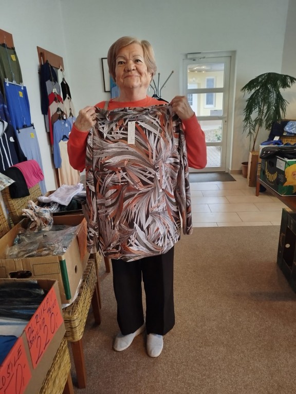 Opět nás navštívila paní Žáková se svým textilním zbožím. Na hale jsme si nakoupili moc hezké halenky, svetříky a další kousky do šatníku. Zkrátka jsme si udělali radost.