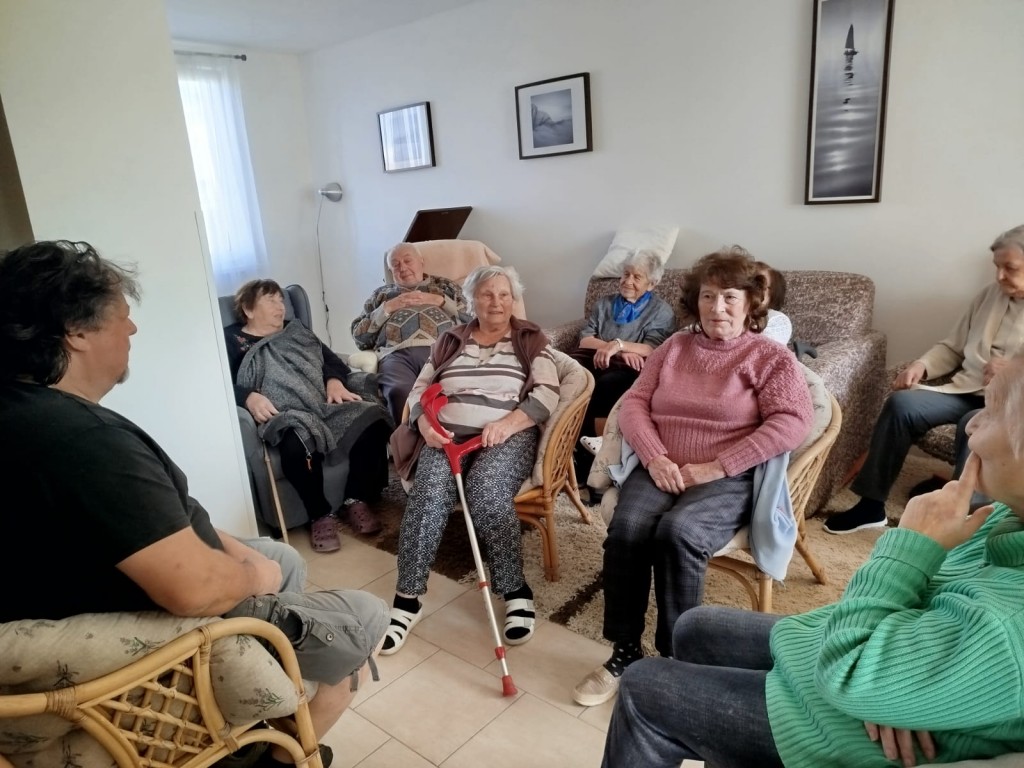 Po čase nás navštívily milé děti z místní mateřinky. Cvičilo se, zpívalo se, zkrátka setkání se opět povedlo na výbornou! Všichni spokojení.